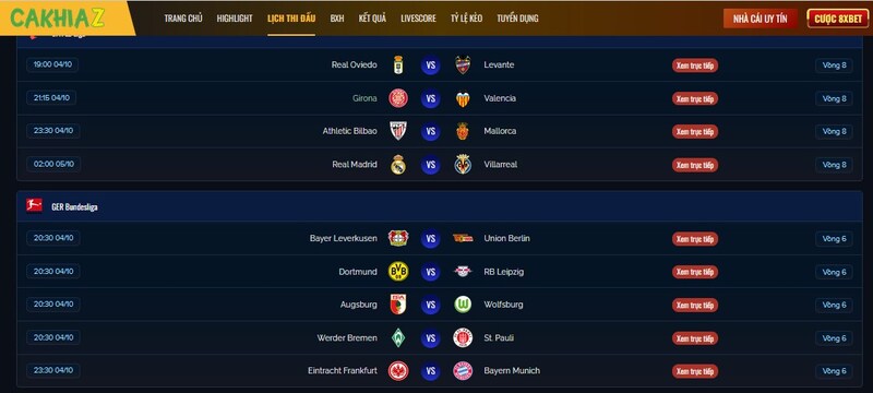 - Lịch thi đấu: Giúp anh em không bỏ lỡ các trận cầu đỉnh cao cùng thông tin trước trận chi tiết.